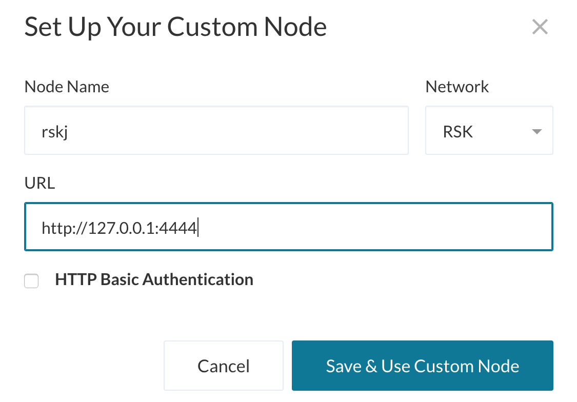 The test performed uses the Rootstock (with a local regtest node) and Ethereum (through the Ganache client) nodes as Mainchain and Sidechain respectively. The demonstration images to interact with both Blockchain were taken from the MyCrypto application. Alternatively, MyEtherWallet or similar can be used which will give the same results.